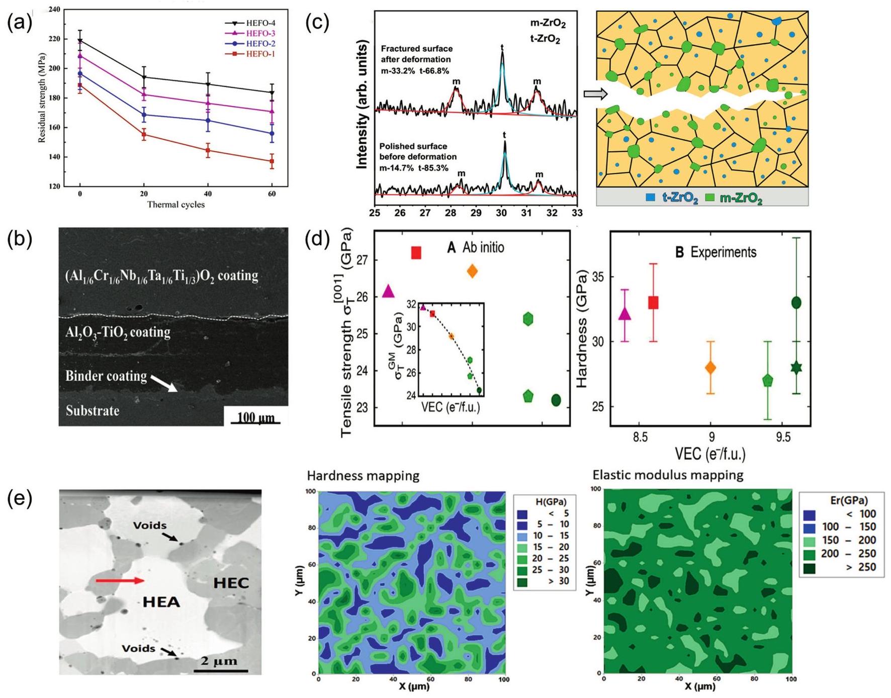 | Mechanical | (Al1/6Cr1/6Nb1/6TaTi1/3)O2 | elastic modulus ( | [197] |