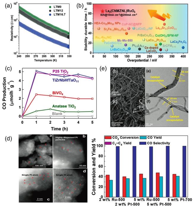 | La(FeCuMnMgTi)O3 | Solid-state milling-heating method | displays robust stability in benzyl alcohol oxidation. | [124] |