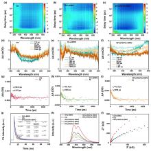 The pseudocolor plots of (a) CN, (b) Ovs-BWO and (c) 40%CN/OVs-BWO. Transient absorption spectra (d) CN, (e) Ovs-BWO and (f) 40%CN/OVs-BWO.The corresponding fs-TAS decay curves (at 500 nm) for (g) CN, (h) Ovs-BWO and (i) 40%CN/OVs-BWO photocatalysts. (j) Time-resolved PL spectra of theindividual photocatalysts. (k) PL spectra of CN, OVs-BWO and CN/OVs-BWO loaded with different CN contents. (l) EIS Nyquist plots of CN, OVs-BWO and 40%CN/OVs-BWO.