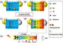 , energy of the Fermi level). (a) AZA under light irradiation. (b) AZA under concurrent ultrasonic wave and light irradiation. (c) AZP under light irradiation. (d) and (e) AZP under concurrent ultrasonic wave and light irradiation. AZA, Au/ZnO/Au; AZP, Au/ZnO/Pt. Reproduced from ref. [