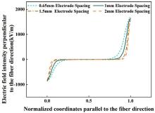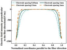 Effect of electrode spacing on the electric field distribution perpendicular to the fiber direction for D31-FPC.
