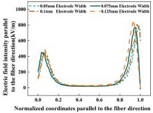 Effect of electrode width on the electric field intensity parallel to the fiber direction for D33-Type FPC.