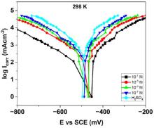Cathodic and anodic polarization run via PDP studies for various concentrations of H