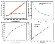 Temperature dependent (a) thermal expansion coefficient, (b) thermal diffusivity, (c) heat capacity, and (d) thermal conductivity of CrTa